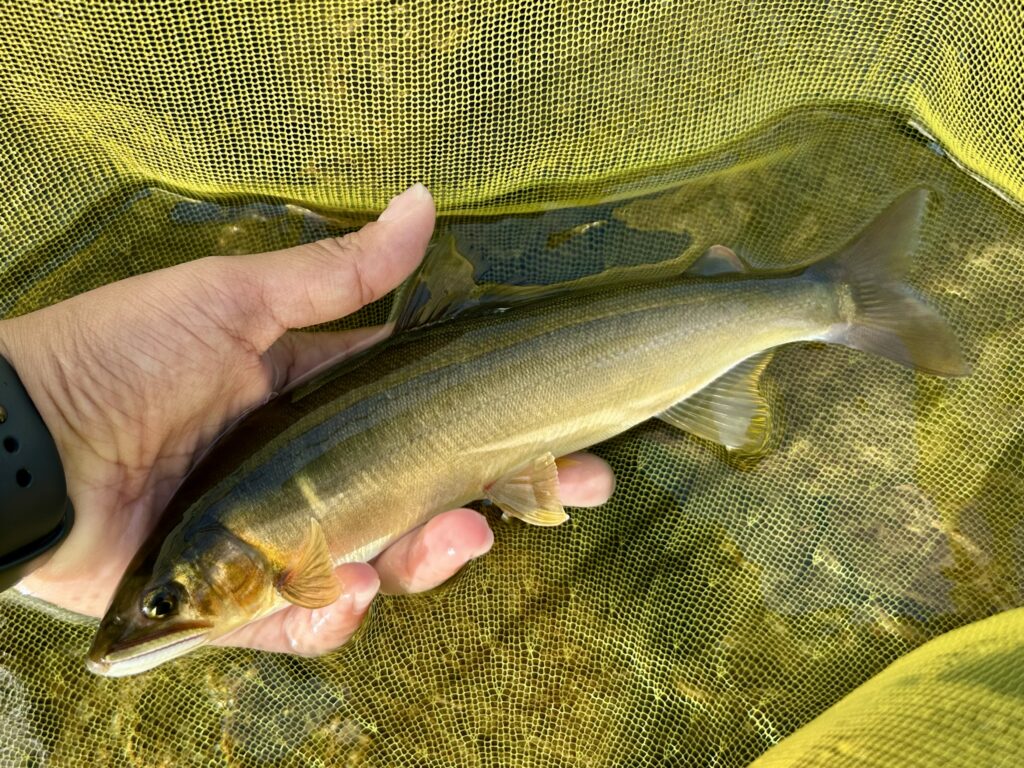 8時半過ぎに漁協前に到着。そのまま準備して漁協前に入川!ちょっと流れのキツい瀬は遠慮して右岸側のチャラへ。オトリを泳がせるとすぐに1匹目^o^ そのまま探ると良型鮎が連発!当たりも強烈で大きいのは引き抜けないので、下って寄せてタモにキャッチ。大きいので24㎝ありました(〃ω〃) バラしとキャッチミスが多く最終取り込み21匹。まだまだ練習です笑 途中雨に打たれながらも楽しい釣行になりました!