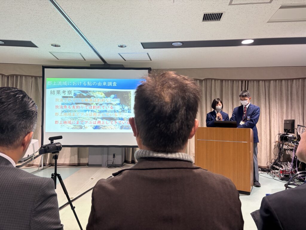 「清流長良川の鮎」は2015年に「長良川システム」が高く評価され世界農業遺産に認定されました。今回のシンポジウムでは岐阜薬科大の生徒、「海と日本プロジェクト岐阜」の小学生、「郡上鮎の会」の高校生の方々が登壇され様々な取り組みや研究報告の発表があました。